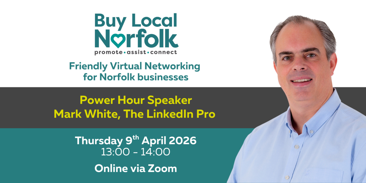 Come and join us on Thursday 9th April from 1.00pm for our virtual networking with fellow Norfolk business owners.