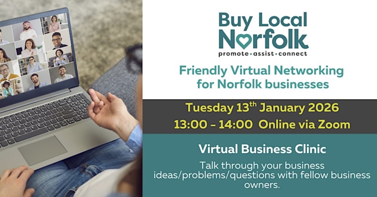 Come and join us on Tuesday 13th January at 1.00pm for an hour of virtual networking with fellow Norfolk business owners.
